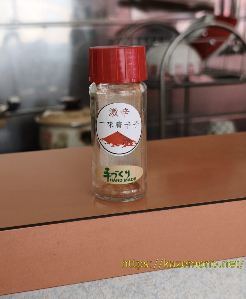 店内のテーブルにも、その手作り一味が薬味として置いてある。