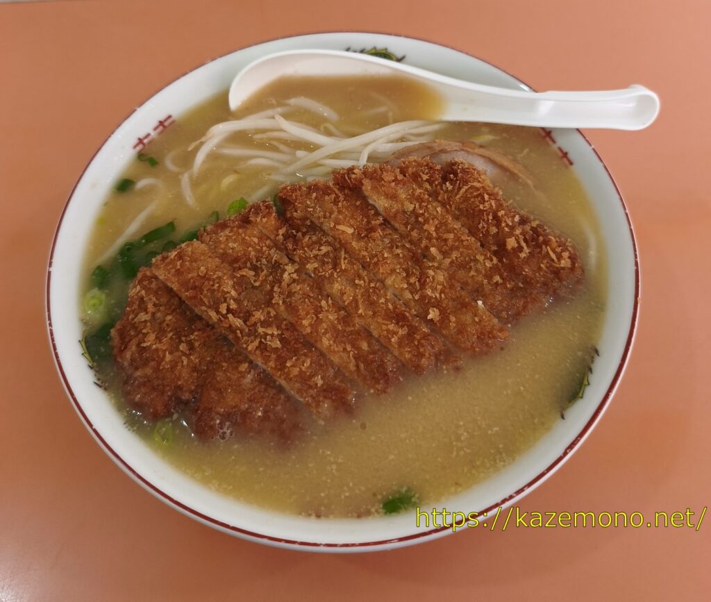 ラーメンにトンカツの組み合わせは人生初で、頭の片隅で「合うの?」って一瞬だけ思った。