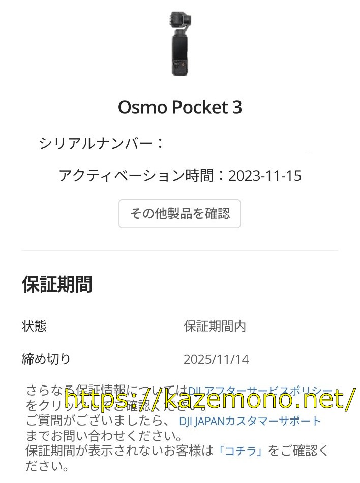 調べるとDJI Pocket 3のDJI Care(延長保証)が、この日が最終日だった。