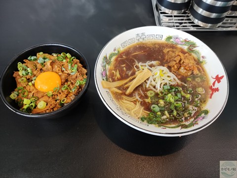 2025年7月オープンの「中華そば大寿」で、中華そば+豚丼セット(1,100円)を夕方に実食。昔ながらのすき焼き風スープに、チャーシューのように柔らかい豚バラ肉が特徴的。豚丼も満足度が高く、スープを飲み干すほど好みの味わいだった。次回は塩とんこつを試したい。